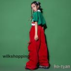 キッズ ダンス カーゴパンツ へそ出し 赤 黒 ヒップホップ 女の子 トップス シャツ タンクトップ パンツ HIPHOP ジャズダンス 子供 ステージ衣装 韓国 団体服