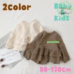 ブラウス 長袖 子供服 トップス キッズ ベビー 女の子 チュニック ラウンドネック フリル 袖ゴム ゆったり 無地 おしゃれ 可愛い 春 秋 冬