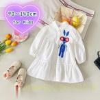ワンピース ブラウスワンピ 長袖 チュニック ワッペン ティアード パフスリーブ 子供服 キッズ 女の子 襟付き スタンダードカラー かわいい キュー