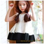 チュニックブラウス ノースリーブブラウス Aラインタンクトップ トップス 夏 子供服 女の子 女児 キッズ 小学生 白 黒 バイカラー モノトーン フ