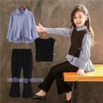 3点セット韓国子供服 子ども服 春秋 女の子 女児 チヨツキ 通学 ストライプ ブラウス 長袖 トランクス おしゃれ カジュアルキッズウエア ジュニア服
