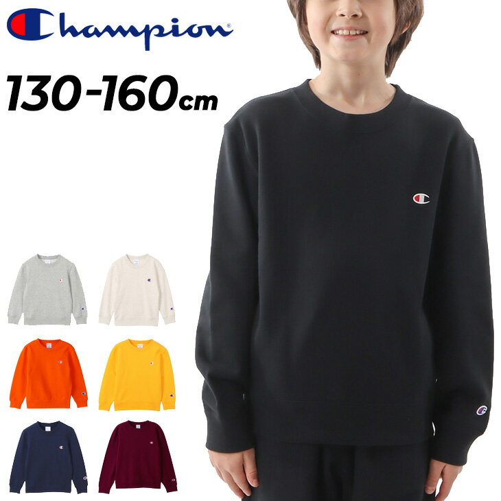 チャンピオン キッズ トレーナー 長袖 130-160cm 子供服 Champion スウェットシャツ 裏毛タイプ クルーネック プルオーバー 無地 ワンポイント ジュニア キッズウェア スエット トップス 子ども こども シンプル コットンUSA ブランド アパレル/CK-Y001