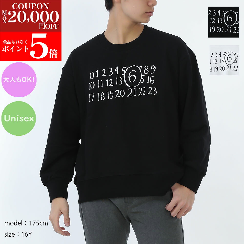 【激安!!好評!!在庫処分SALE延長☆全品P5倍&更に最大2万円値引きクーポン28日迄】MM6 KIDS エムエムシックス メゾンマルジェラ キッズ トレーナー M61009 MM02X メンズ ボーイズ レディース ガールズ スウェット 長袖 クルーネック カラー2色 ユニセックス 大人もOK
