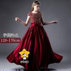 キッズドレス 子供服 ロング丈 キッズ ガール 子供ドレス ピアノ発表会 ドレス 高校生 ワンピース ワインレッド 袖あり キャップスリーブ キラキラ プリンセスド