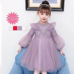 チュール ワンピース キッズ ドレス 子供 ドレス 長袖 チュール 女の子 子供服 こども服 子ども服 子ども ドレス 無地 刺繍 フラワー バックリボン 夏 100cm 110