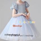 キッズドレス 子供 ドレス ピンク ブルー 水色 膝丈 ミディ丈 ピアノ 発表会 女の子 半袖 パフスリーブ チュールスカート キラキラ スパンコール