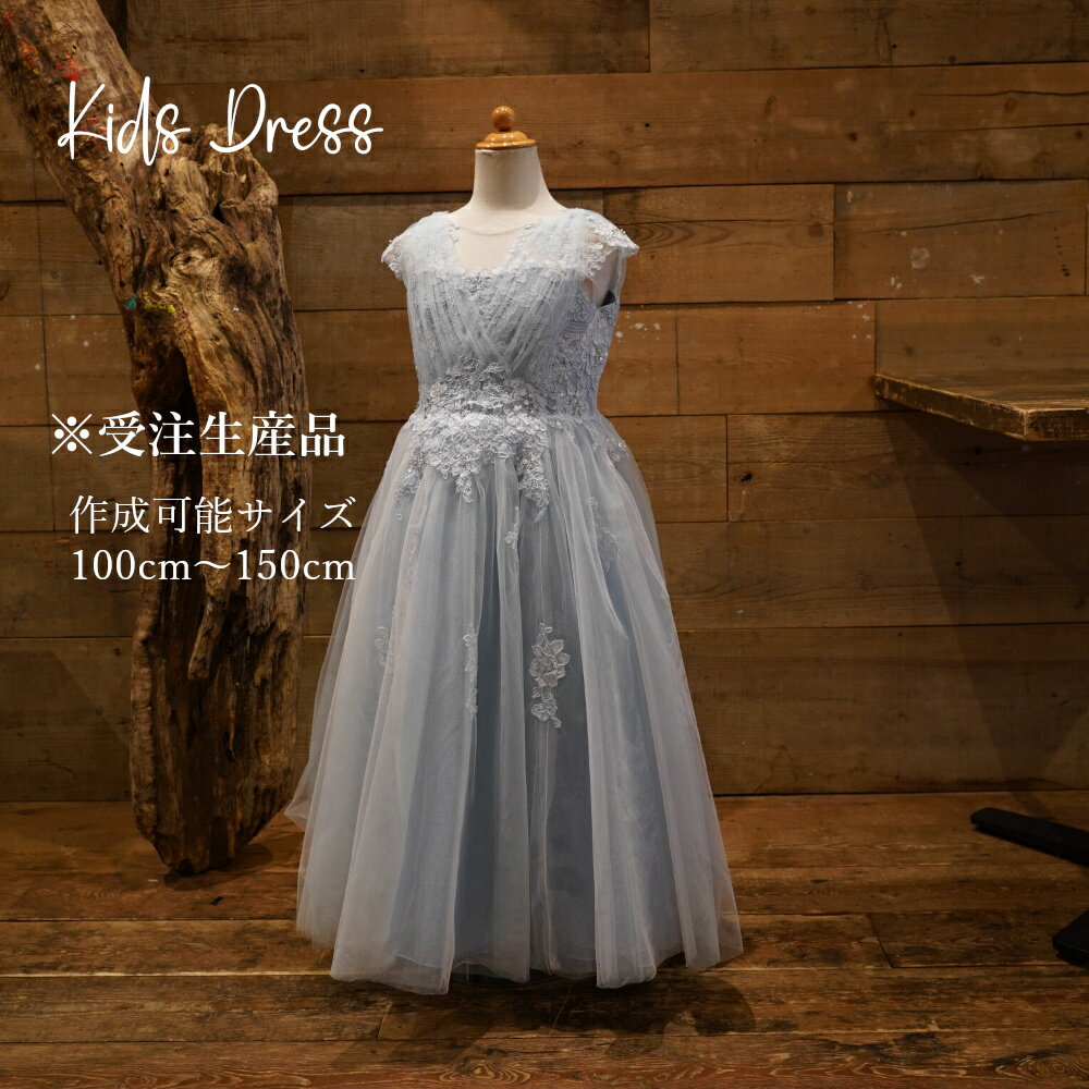 [受注生産] 豪華 高級 ドレス 子供 撮影用 発表会 結婚式 100cm~150cm キッズ ドレス アンクル丈 水色 【送料無料】