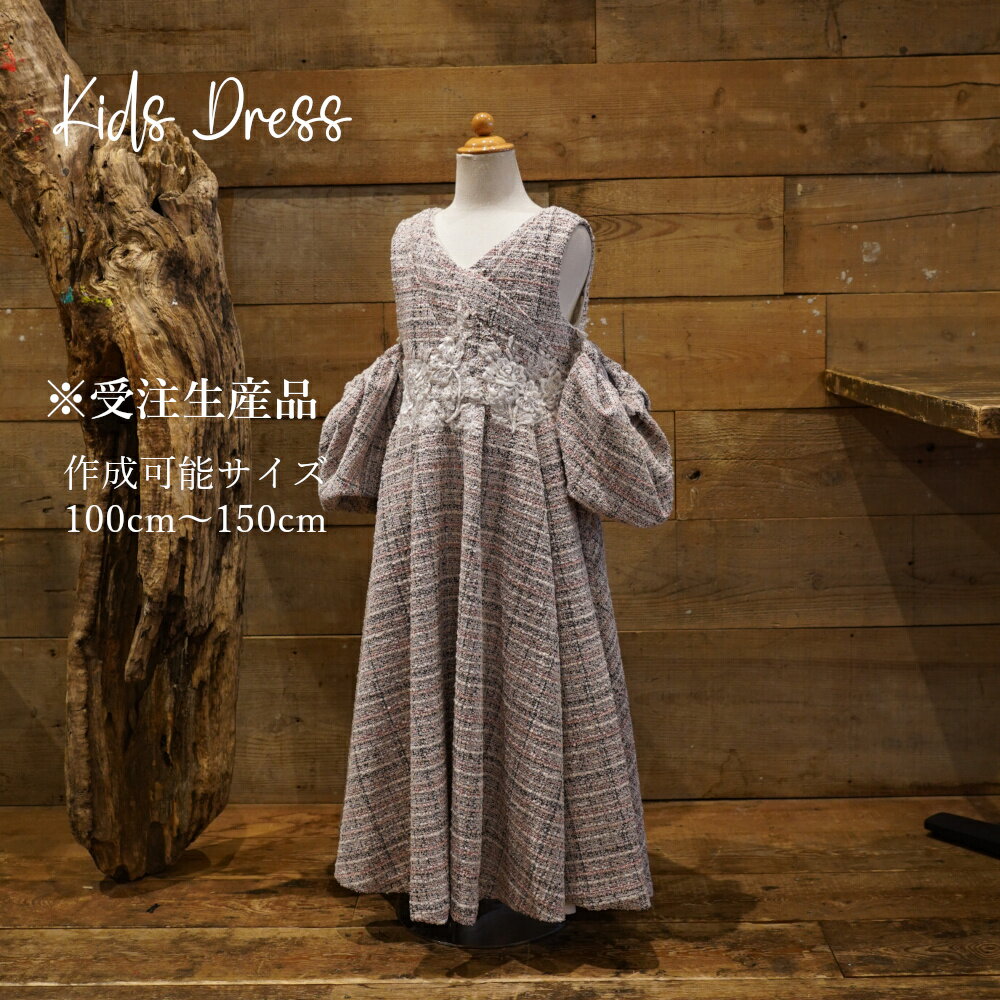[受注生産] 豪華 高級 ドレス 子供 撮影用 発表会 結婚式 100cm~150cm キッズ ドレス アンクル丈 ピンク ブラウン 【送料無料】