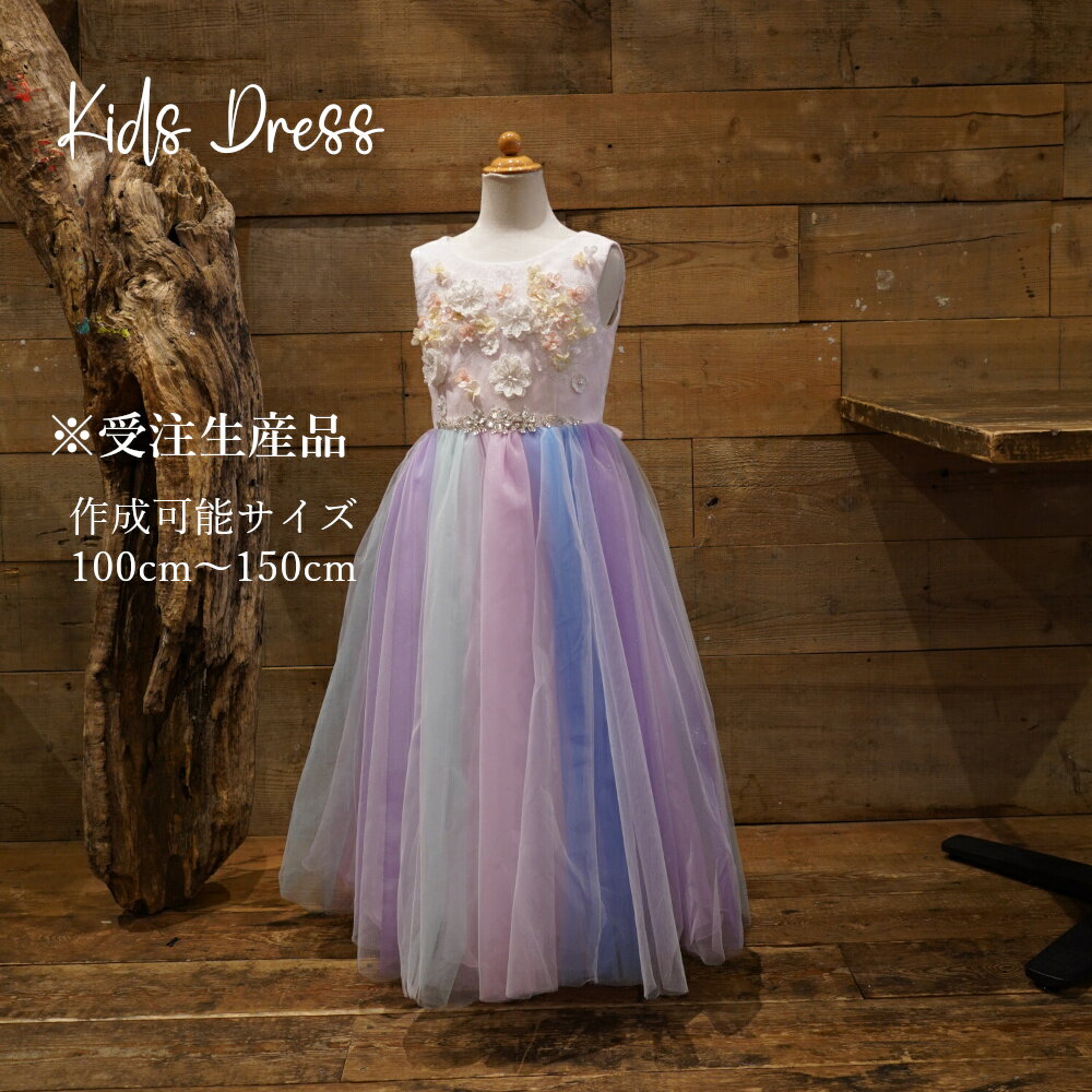 [受注生産] 豪華 高級 ドレス 子供 撮影用 発表会 結婚式 100cm~150cm キッズ ドレス アンクル丈 レインボー 【送料無料】