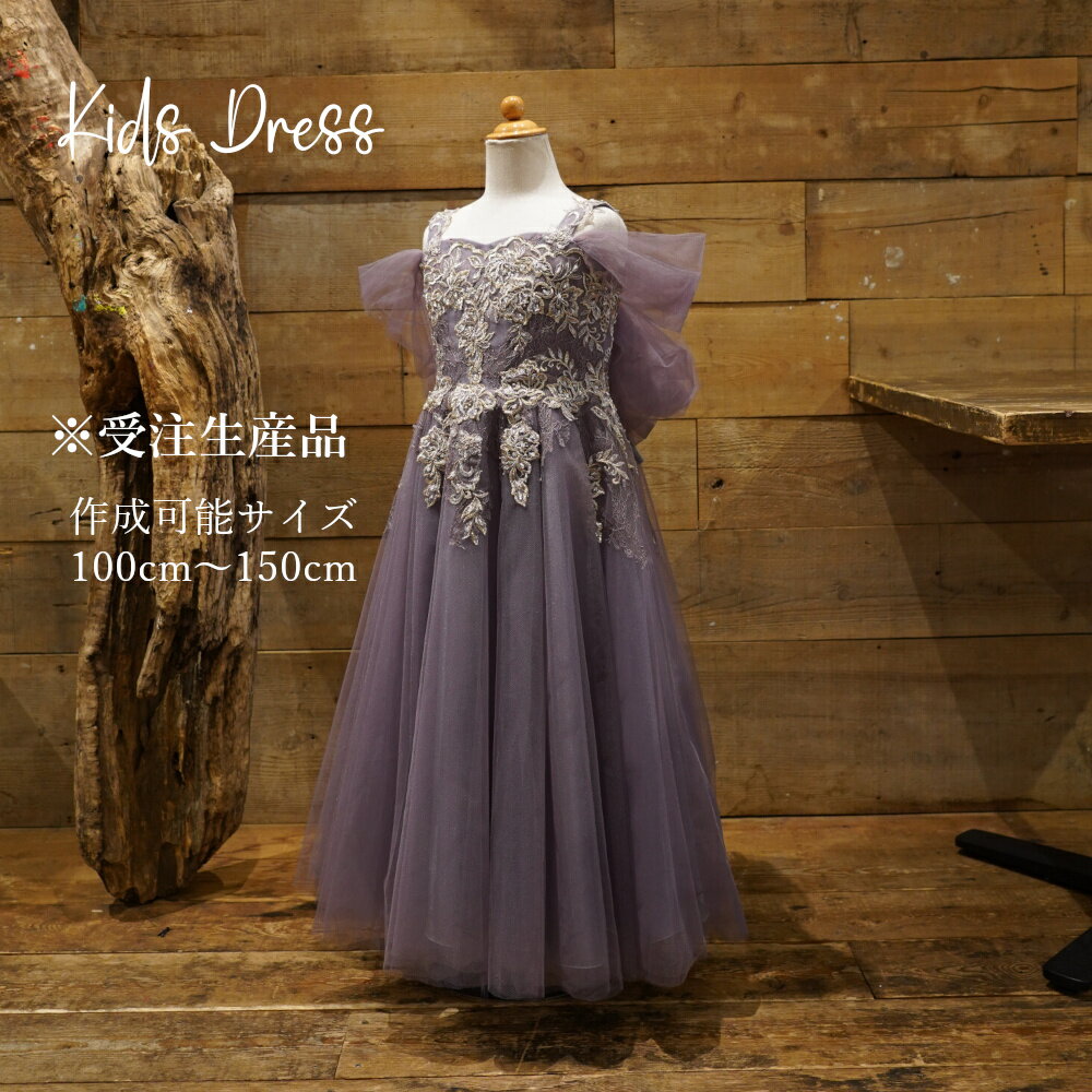 [受注生産] 豪華 高級 ドレス 子供 撮影用 発表会 結婚式 100cm~150cm キッズ ドレス アンクル丈 パープル 【送料無料】