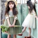 キッズドレス 130サイズ 110サイズ 可愛い モスグリーン ホワイト 刺しゅう入りドレス 発表会 ピアノ 結婚式 カジュアルドレス 在庫処分