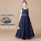 ピアノ発表会 ドレス 中学生 ネイビードレス キッズドレス シフォン レース ノースリーブ ロング丈 ファスナー ワンピース シンプル バイオリン