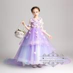 キッズ ドレス 子供ドレス パープル フラワー 女の子 ピアノ 発表会 フォーマル 子どもドレス ガールズ イベント 舞台 演出 ステージ衣装 紫 花 お姫様 卒園式