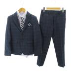 ワンダーファクトリー WANDER FACTORY 美品 スーツ セットアップ ジャケット パンツ シャツ ネクタイ 150cm 紺 ネイビー 0404 キッズ