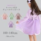 チュールワンピース キッズ 女の子 長袖 フォーマル ケーブル柄 リボン ドレス 発表会 入学 卒園 春秋冬 100 110 120 130 140cm SALE