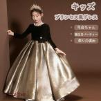 キッズプリンセス風ドレス 黒 ゴールド オーマルウェア 司会ちゃん 誕生日パーティ 祭り演出用 女児フォーマルドレス パールネックレス付き ベルベット素材