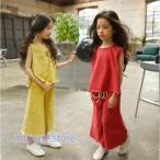 セットアップ 韓国子供服 ジャージ キッズ 女の子 上下セット ノースリーブ 春夏 トップス Tシャツ ロングパンツ 部屋着 可愛い おしゃれ 新作
