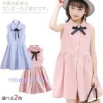 子供ワンピース ノースリーブ ワンピース Aラインワンピース ガールズ 女の子 フレア 無地 シャツワンピース キッズ 可愛い カジュアル ファッション 膝上