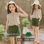 韓国子供服 セットアップ キッズ 女の子 ノースリーブ 春夏 2点セット 上下セット Tシャツ ドット柄 ショートパンツ ジュニア おしゃれ 可愛い カジュアル 新品