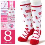 靴下 キッズ ハイソックス イチゴやハートがかわいいラブリーデザイン 8足セット 綿混 15-19cm/19-24cm対応【送料無料】