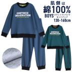 パジャマ キッズ 男の子 内側が綿100% 長袖 春 秋向き スウェット上下 リブ仕様 ロゴプリント 親子 おそろい