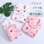 パジャマ キッズ 女の子 長袖 綿100% 前開き ボタン留め イチゴ柄 上下セット ルームウェア 親子お揃い 110 120 130 140 150