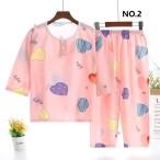 パジャマ キッズ 子供服 ジュニア 男女兼用 夏 七分袖 部屋着 寝間着 柔らかい ルームウエア プリント 2点セット セットアップ /110/120/130/140/150/160cm