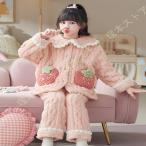 ルームウェア キッズ パジャマ フランネル ボーダー柄 上下セット 女の子 寝間着 トップス ポケット付き 部屋着 前開き 厚手 柔らか肌触り ふわもこ 快適