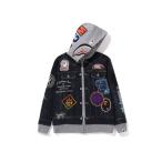 パーカー SHARK BAPE EMBLEM DENIM JACKET PRINT ZIP HOODIE キッズ 子供服 男の子 女の子
