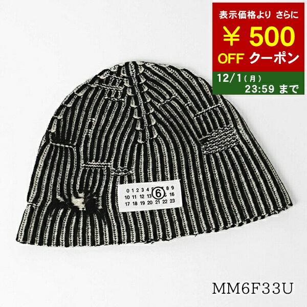 エムエムシックス メゾンマルジェラ MM6 Maison Margiela KIDS キッズ ニットキャップ MM6F33U M60913 MM06K ブラック ホワイト系 M6C39 ニューメリックロゴ 総柄 小物 ニット帽 CAP ビーニー ダメージ加工 プレゼント 誕生日 ガールズ レディース 大人もOK 【2025秋冬新作】