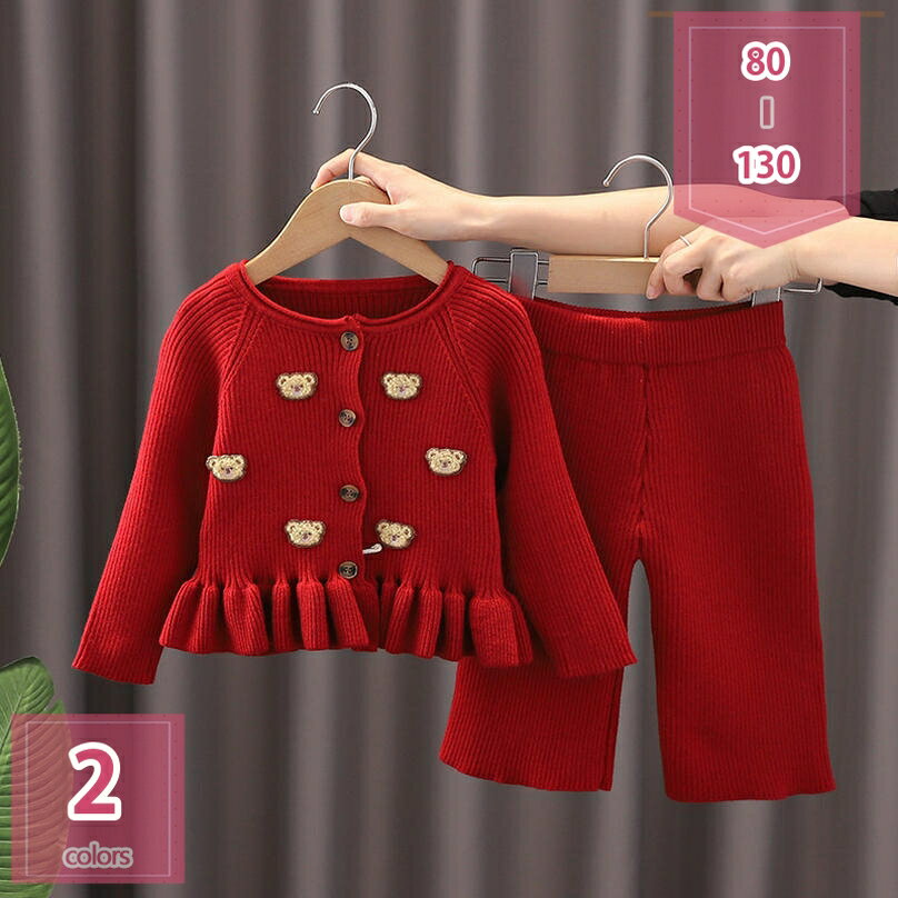 ニットセーター キッズ 女の子 セーターセット フレアパンツ 2点セット 上下セット 春秋冬 長袖 丸首 もこもこ ベビー服 子供服 ガールズ服 おしゃれ 可愛い 韓国風 保温 防寒 通学 通園 普段着 入学式 結婚式 新年服 holosbird-goods1