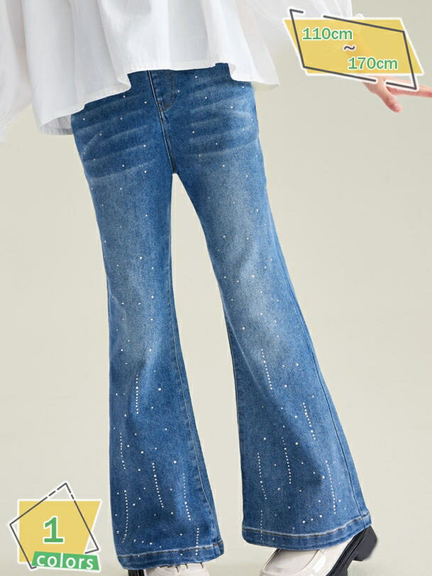 子供服 デニムフレアパンツ ロングパンツ 女の子 ボトムス デニム ブーツカット キッズ 大人っぽい 春秋服 春秋物 ジュニア ダンス かっこいい 可愛い ジーパン オシャレ 春 秋 mysco