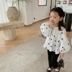 キッズ シャツ ブラウス チュニック カットソー 女の子 ドット ドット柄 子供服 韓国こども服 ドット柄パフスリーブカットソー【T113】