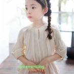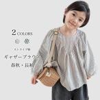 ブラウス 長袖 キッズ ギャザーブラウス 春 秋 女の子 長袖ブラウス ゆったり ストライプ柄 お洒落 レトロ パフスリーブ 女児 トップス