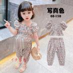 【特価】子供服 2点セット キッズ 女の子 夏 韓国こども服 花柄 半袖 ブラウス シャツ Tシャツ+九分丈パンツ カジュアル ベビー ジュニア 可愛い