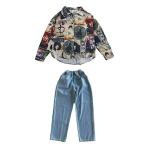 【特価】キッズ ダンス 衣装 ヒップホップ キッズ HIPHOP ゆるシャツ 長袖 デニム ダンスパンツ ダボダボ ゆったり 男の子 女の子 子供 ブラウス