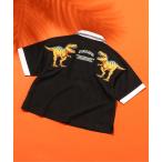ブラウス シャツ 福井県立恐竜博物館コラボ 恐竜バックワッペンボウリングシャツ キッズ 子供服 男の子 女の子
