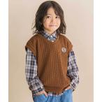 ブラウス シャツ 「お揃い」タータンチェックシャツ+ケーブルジャガードベストセット(90~130cm) キッズ 子供服 男の子 女の子