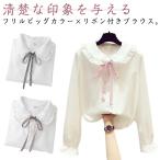 子供服 子ども服 フォーマルシャツ 通園 通学 キッズ ブラウス スクールシャツ リボン付き フリル襟 キッズ 丸衿 シフォンシャツ 冠婚葬祭 長袖