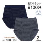 キッズ ジュニア ブリーフパンツ 綿100% 2枚組 ボーダー 子供パンツ 下着 100〜160 (3083)