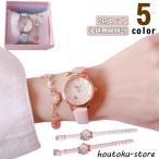 2点セット 腕時計 キッズ 子供 女の子 ブレスレット付き 防水 かわいい リストウォッチ 時計 PU革 レザー おしゃれ 幼稚園 カジュアル シンプ
