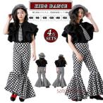 チェック柄 キッズ ダンス 衣装 セットアップ 女の子 韓国 ブロックチェック ブラック フリル 袖 トップス ハイウエスト ロングパンツ ブーツカットパンツ 子供