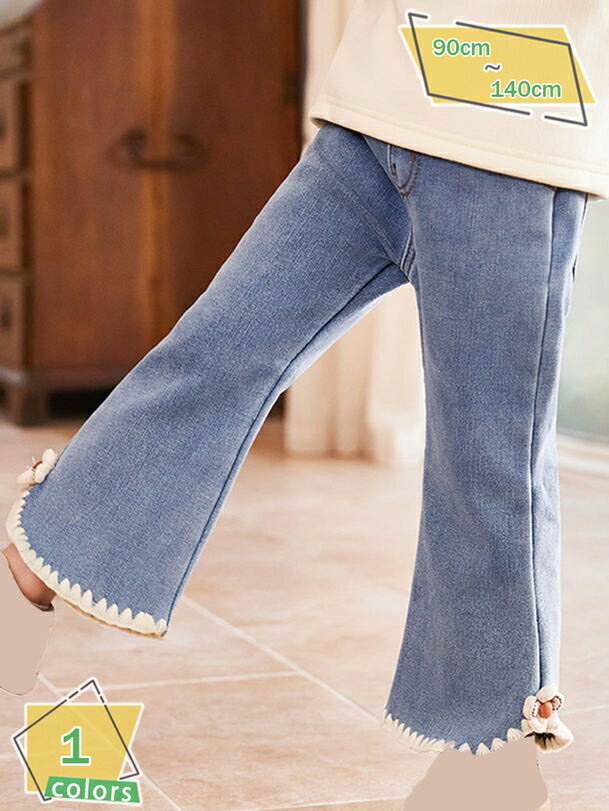 キッズ ベビー 女の子 デニム パンツ フレアデニム フレア ブーツカットパンツ ボトムス 裏起毛 ズボン 可愛い 子供服 春 秋 冬 RaogtCYU