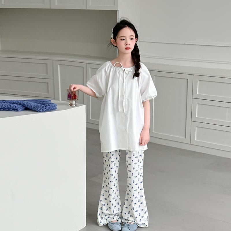 キッズ 女の子 ガールズ セットアップ 半袖ブラウス 小花柄 フレアパンツ ベルボトムパンツ ゆったり 薄手 柔らかい肌触り コットン 韓国風 カジュアル 春夏 2点セット 普段着 ツーピース