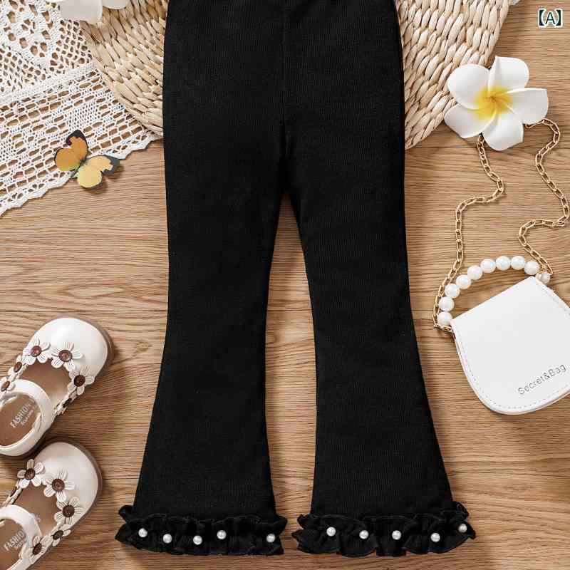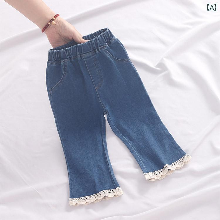 春 夏 秋 冬 キッズ 子供 ベビー 赤ちゃん ファッション おしゃれ かわいい かっこいい 男 女 韓国 女子 子供用 ベルボトムパンツ スリム ストレッチパンツ かわいい レース かわいい アウター ウェア スタイリッシュ スリム ビッグ ガール