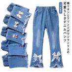 デニムパンツ ベルボトムパンツ キッズ ロングパンツ 女の子 ジーパン ジーンズ 子ども 長ズボン 可愛い パール リボン スリット 子供服