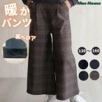 ワイドパンツ 子供服 女の子 キッズ 温℃ 裏ベロア ストレッチ チェック柄 無地 ボトムス