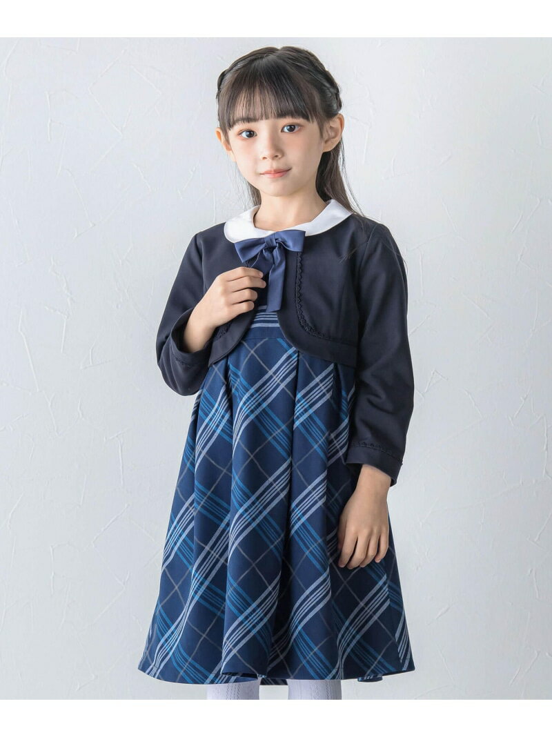 ワンピース リボンタイ付きチェックワンピース+ボレロアンサンブル(110~130cm) キッズ 子供服 女の子