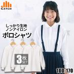 3枚セット ポロシャツ 女子 長袖 ノンアイロン 女の子 女児 キッズ ガールズ 形態安定 速乾 学校 小学生 中学生 高校 制服 学生服 スクール 子供 通学 送料無料