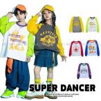 キッズダンス衣装 Tシャツ トップス ヒップホップ ダンス衣装 派手 HIPHOP ファッション ラグランTシャツ ロンT K-POP 韓 黄色 グレー 黄緑 赤 青 紫